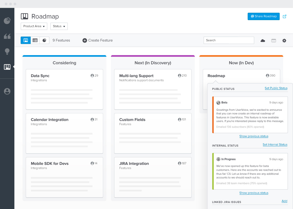 UserVoice is a solid choice for product teams that need a dedicated system to manage and prioritize ongoing feature requests and customer suggestions, particularly in B2B environments. However, it is not designed for deep qualitative analysis — it does not automatically surface themes from interviews, support tickets, or reviews, and lacks AI-powered coding or synthesis. If your goal is to quickly understand the 'why' behind customer feedback from unstructured sources at scale, Usercall is the stronger fit.