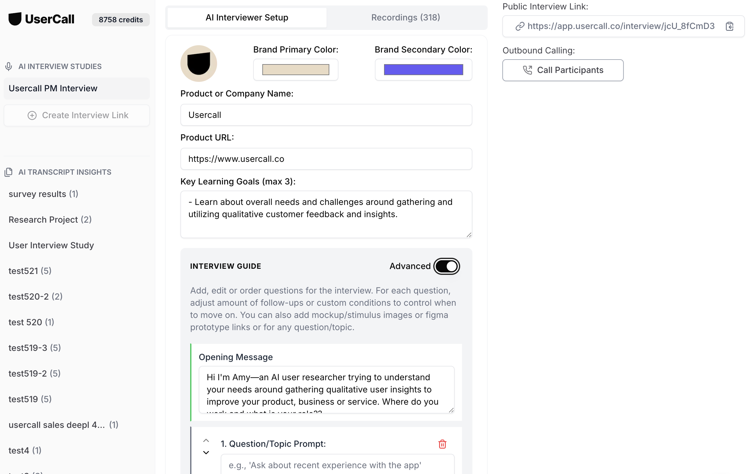 Usercall helps teams run AI-moderated voice interviews and turn them into auto-analyzed insight reports—without scheduling, transcribing, or manually coding responses.